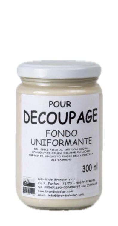 Caratteristiche: fondo ideale di preparazione per favorire l’adesione delle stampine ritagliate e dipinte